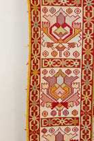 This one-of-a-kind Sumak rug (also spelled Soumak) is embroidered in silk. These rugs are flat-weave but thicker than Kilims, although both weaves are considered pileless rugs. Unlike Kilims, Sumak rugs are not reversible because non-clipped yarns are left on the back. This rug features the lotus motif and a remarkable luster that comes from its 100% silk content. This small rug can be framed and used as tapestry art, or on the floor in low-traffic areas. Each one of our rugs is authentic and handpicked by Nedim himself.