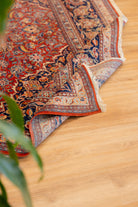 This one-of-a-kind vintage rug is crafted from 100% wool and features a traditional Herati floral design, including symbolic motifs like the lotus and pomegranate. Expertly woven using dense, small Turkish knots and shaved to a thin pile, it reflects the skilled craftsmanship of northwestern Turkey; an area renowned for its rich textile heritage and intricate artistry. Over 70 years old, this heirloom piece carries the beautiful, timeworn character that only age can impart. Please inspect all photos carefully to appreciate its details and condition. Each of our rugs is authentic and handpicked with care by Nedim.