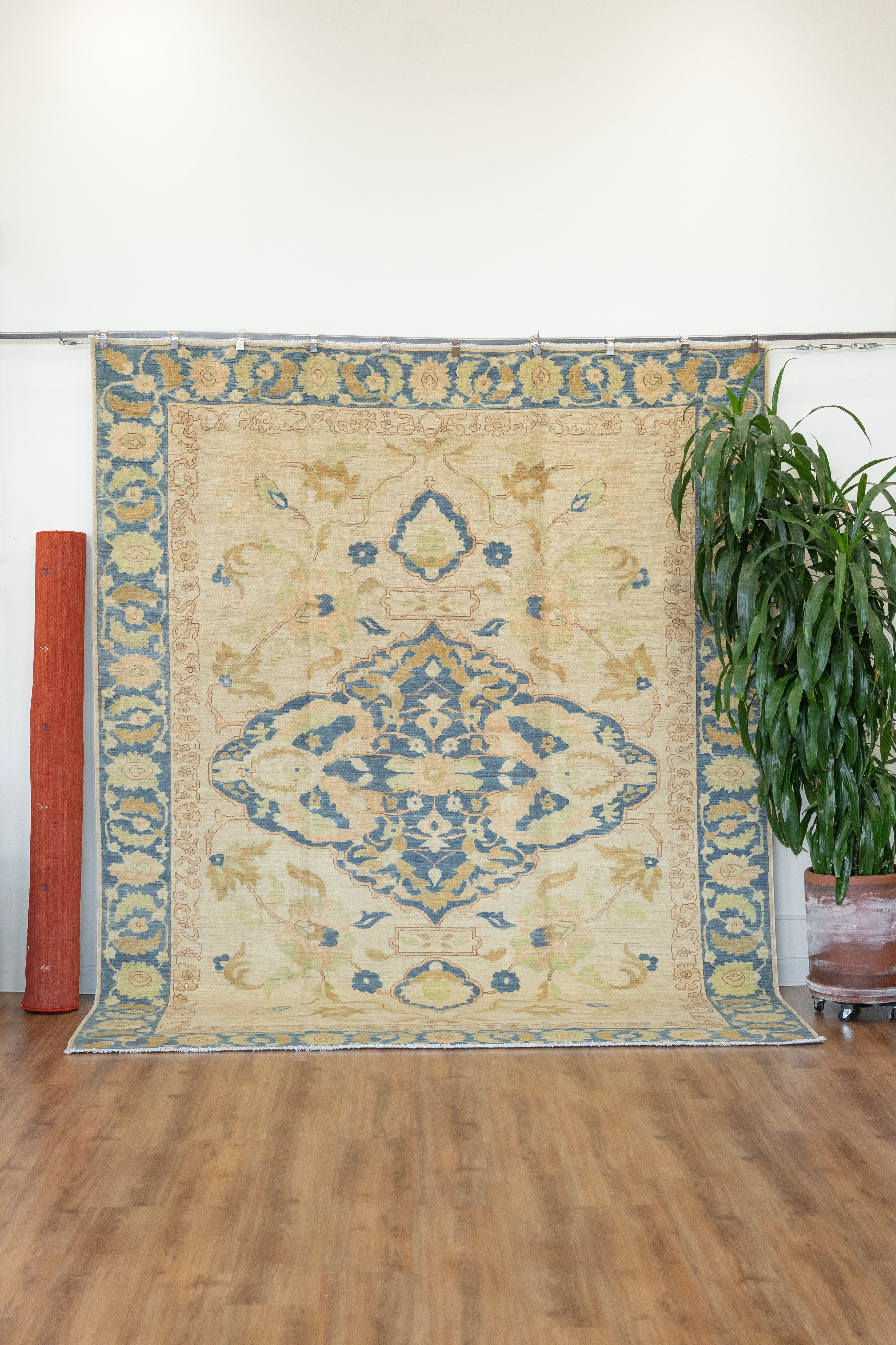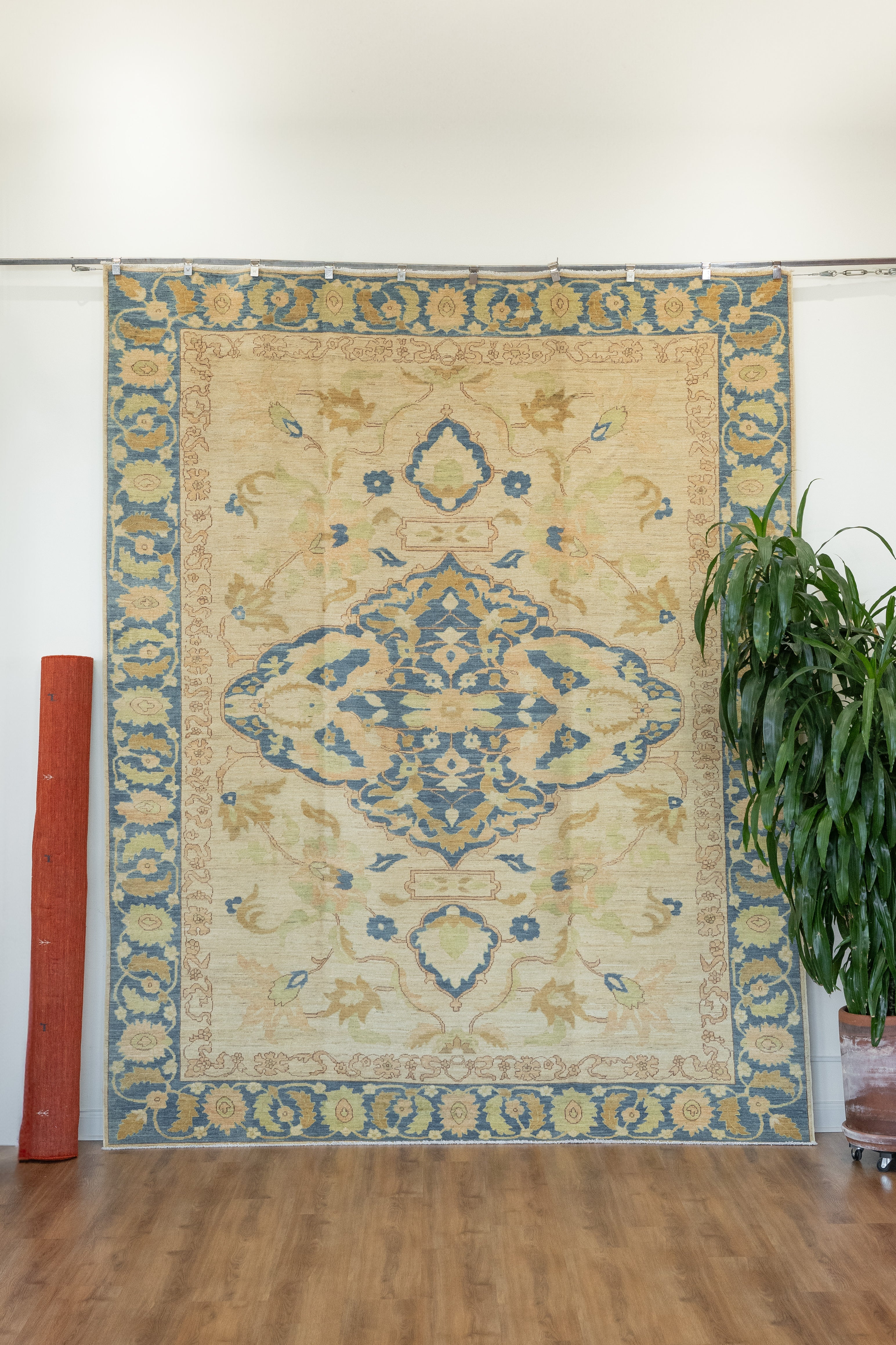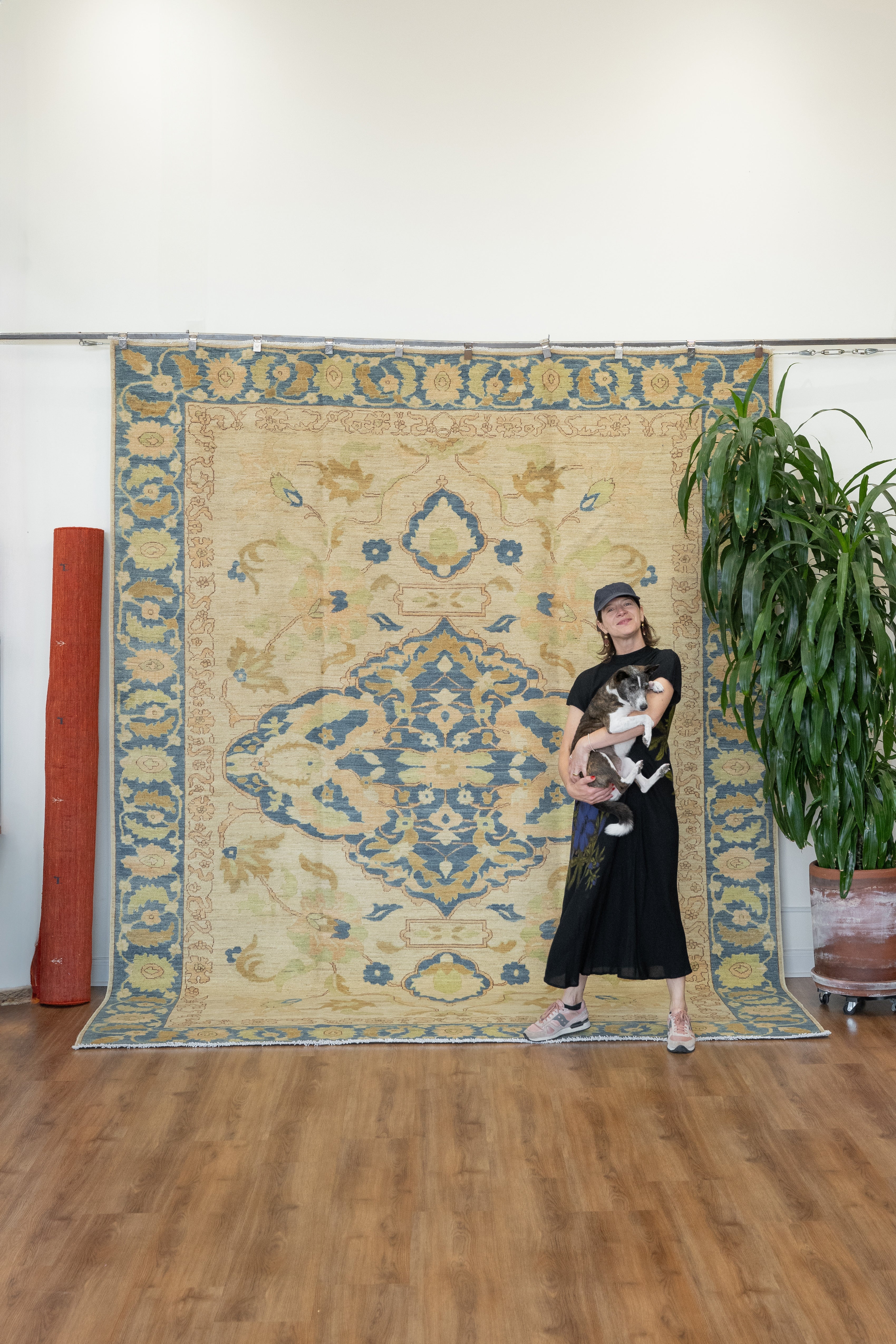This one-of-a-kind rug is made from 100% premium wool. Often spelled Oushak, these weavers are known for the silky, luminous wool they work with. These heirloom-quality rugs showcase romantic, large-scale floral motifs adorned by multiple frame motifs. The feel is velvet-like and lustrous. Each of our rugs is authentic and carefully handpicked by Nedim himself.