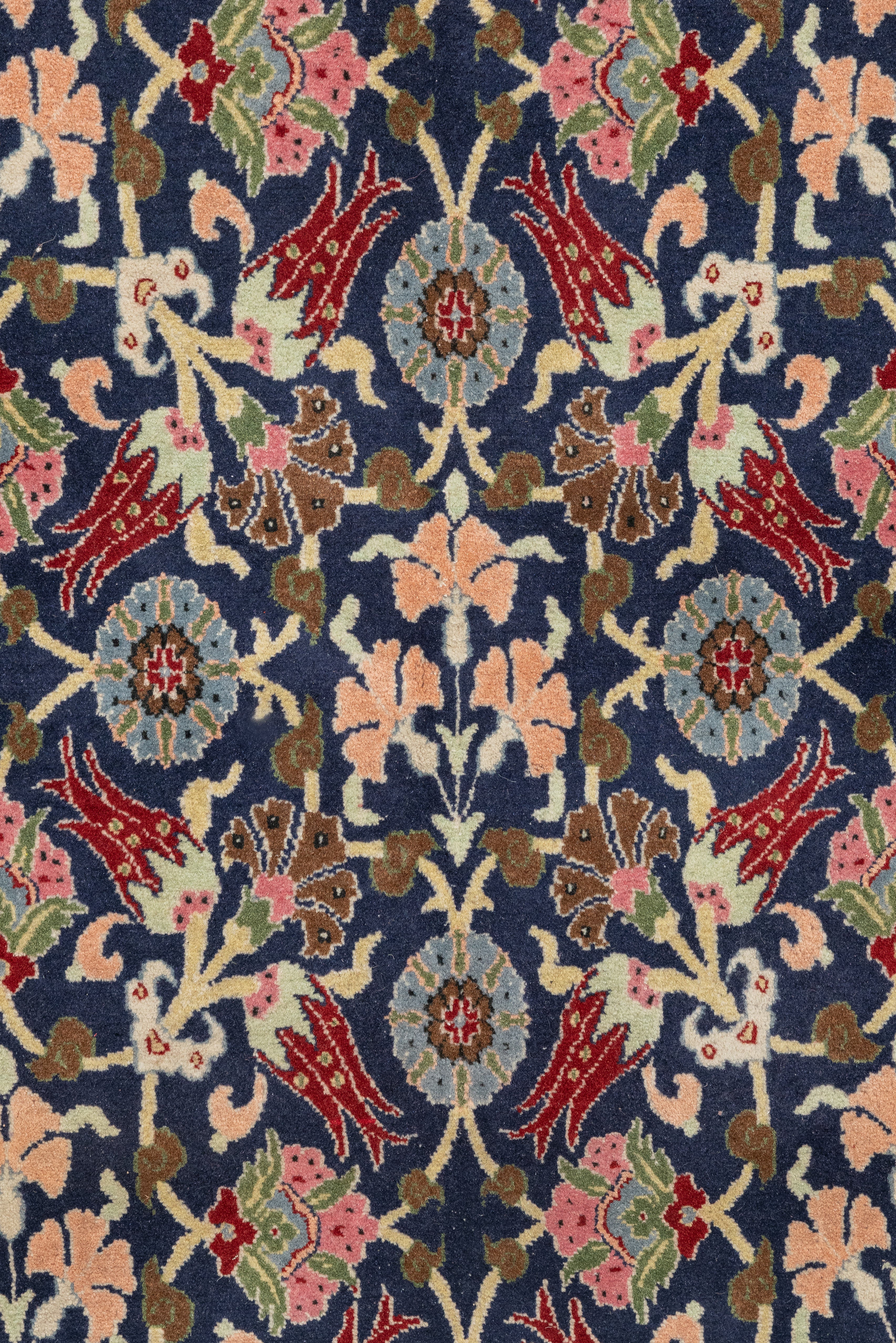 This one-of-a-kind vintage rug is crafted from 100% wool and features a traditional Herati floral design, including symbolic motifs like the lotus and pomegranate. Expertly woven using dense, small Turkish knots and shaved to a thin pile, it reflects the skilled craftsmanship of northwestern Turkey; an area renowned for its rich textile heritage and intricate artistry. Each of our rugs is authentic and handpicked with care by Nedim.